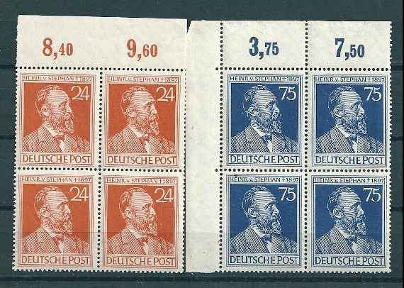 1947 r. Niemcy Mi. 963 - 964**. Znaczki w czwórkach czyste z klejem bez podlepki stan bardzo dobry. Polecam