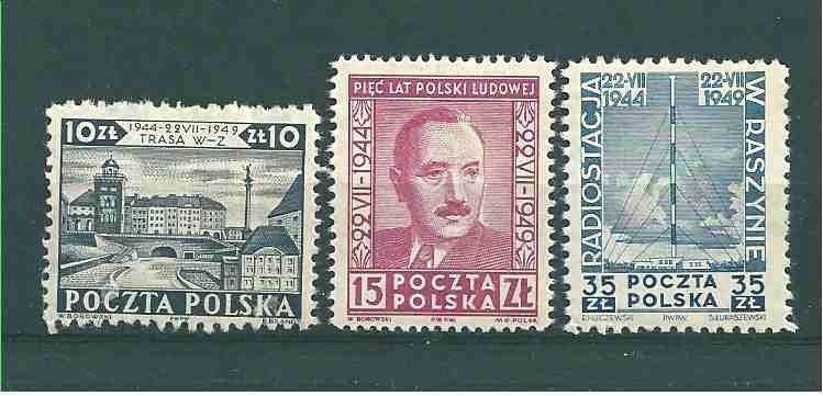 1949 r. Fi 495 - 497**. 5 Rocznica Manifestu lipcowego. Znaczki czyste z klejem bez podlepki. Polecam