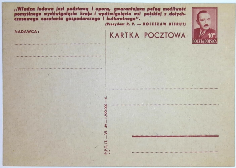 1949 r. Kartka Pocztowa Cp 109 II 15 IV W2.