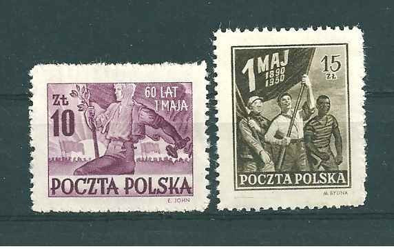 1950 r. Fi 514 - 515**. 60 lecie Świeta 1 Maja. Znaczki czyste z klejem bez podlepki. Polecam