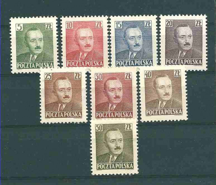 1950 r. Bolesław Bierut Fi 519 - 526**. Znaczki czyste z klejem bez podlepki , stan bardzo dobry. Polecam