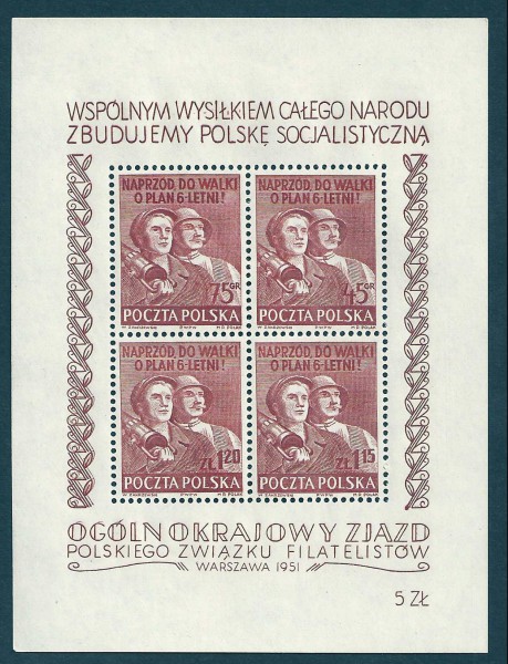 1951 r. Blok nr. 12** B 1 . Blok czysty z klejem bez podlepki lub ich śladem. Stan bardzo dobry. Polecam