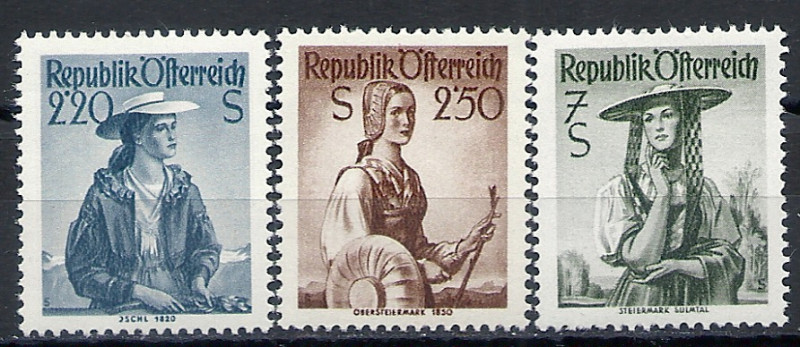 1952 r. Austria Mi 1002 - 1004**. Znaczki czyste z klejem bez podlepki stan bardzo dobry. Polecam