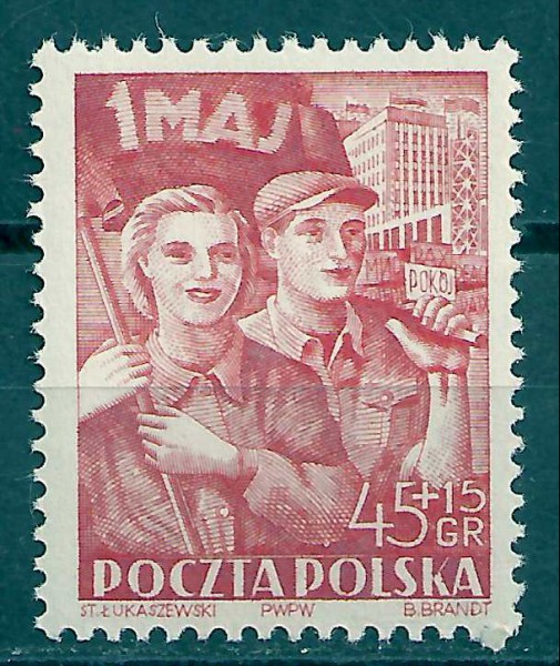1952 r. Fi 598**. Święto Pracy. Znaczki czyste z klejem bez podlepki. Polecam