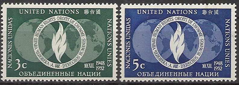 1952 r. ONZ. Mi 17 - 18**. Znaczki czyste z klejem stan nowy. Polecam