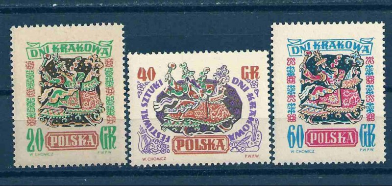 1955 r. Fi 775 - 777**. Dni Krakowa. Znaczki czyste z klejem bez podlepki stan bardzo dobry. Polecam