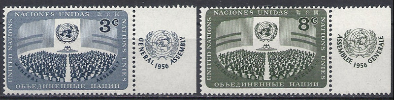 1956 r. ONZ. Mi 51 - 52**. Znaczki czyste z klejem stan nowy. Polecam