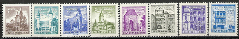 1960 r. Austria Mi 1110 - 1117**. Znaczki czyste z klejem bez podlepki stan bardzo dobry. Polecam