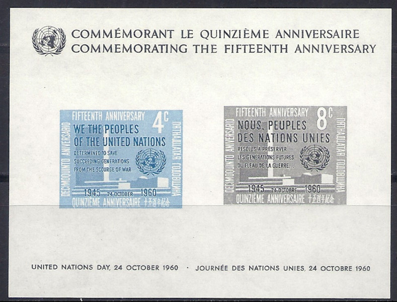 1960 r. ONZ. Blok 2**. Znaczki czyste z klejem stan nowy. Polecam