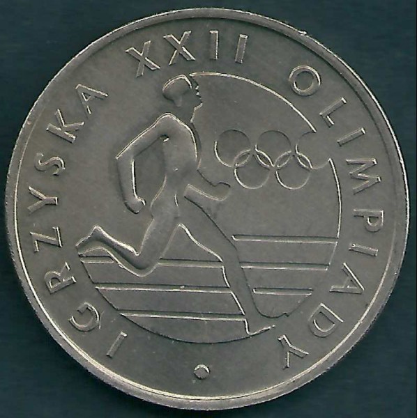 1980 r. 20 zł. Igrzyska XXII Olimpiady. Moneta obiegowa bardzo ładna stan zachowaniw między III i II stanem. Polecam