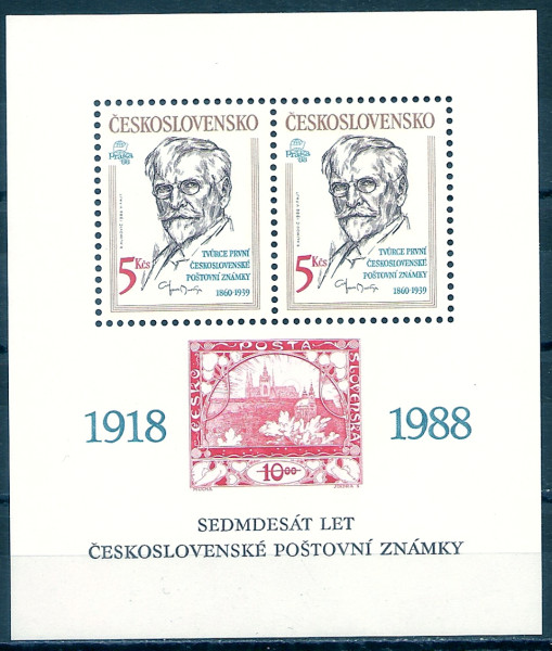 1988 r Czechosłowacja Blok 73**. Znaczki czyste z klejem stan bardzo dobry. Polecam