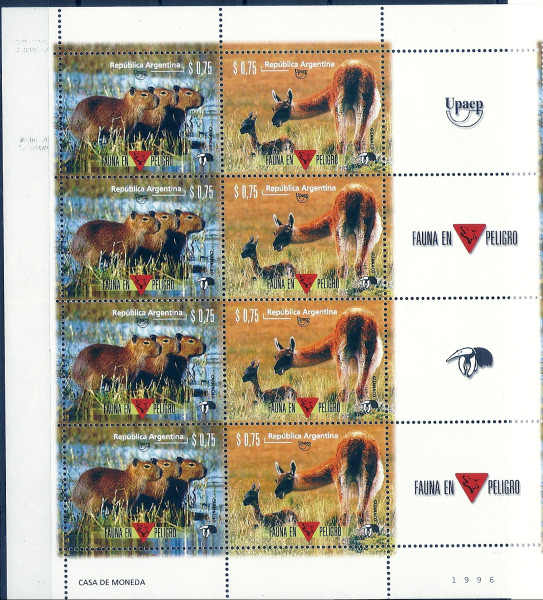 1996 r Argentyna Ark 2332 - 2333**. Znaczki czyste z klejem bez podlepki stan bardzo dobry. Polecam
