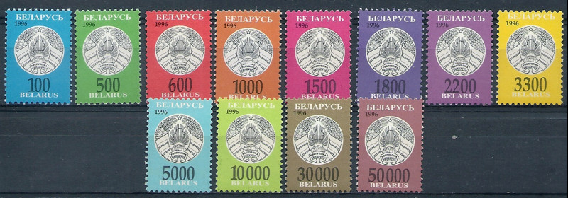 1996 r. Białoruś Mi 146 - 157**. Znaczki czyste z klejem bez podlepki stan bardzo dobry. Polecam