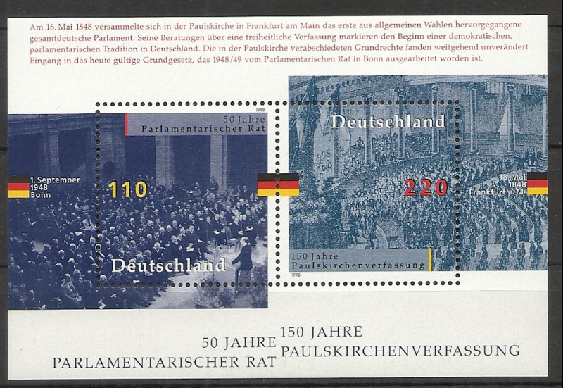 1998 r. Niemcy Blok 43**. Znaczki czyste z klejem bez podlepki stan bardzo dobry. Polecam