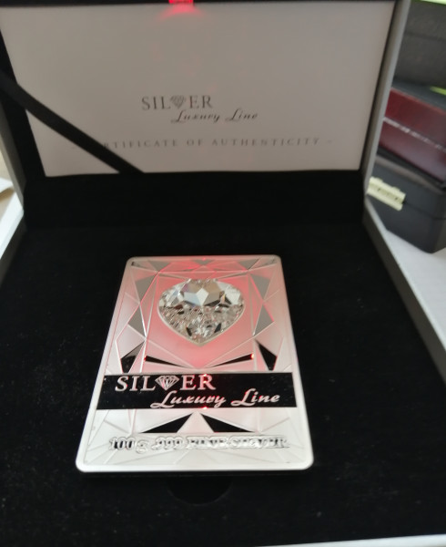 Srebrna moneta sztabka z imponujacym kryształem Swarovskiego: