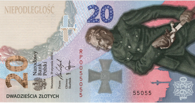 20 zł banknot kolekcjonerski 20 zł Bitwa Warszawska 1920, no: 55055
