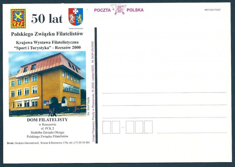 2000 r. 50 Lat PZF. Rzeszów 2000. Stan kartki bardzo dobry. Polecam