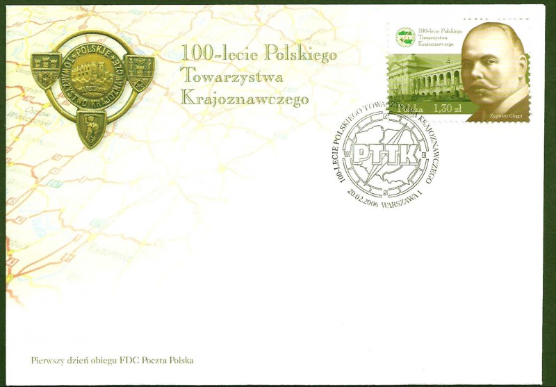 2006 r. FDC 4081. 100 Lecie Polskiego Towarzystwa Krajoznawczego 20.02.2006. Warszawa. Koperta nowa stan bardzo dobry. Polecam