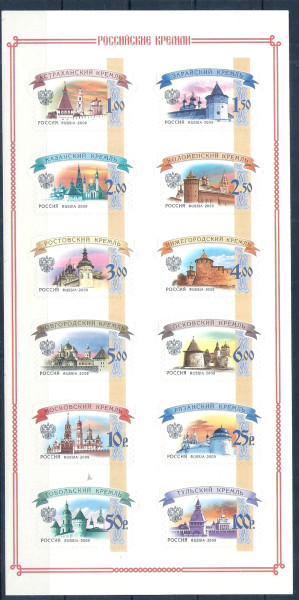 2009 r. Rosja Ark 1586 - 1597**. Znaczki czyste z klejem bez podlepki stan bardzo dobry. Polecam