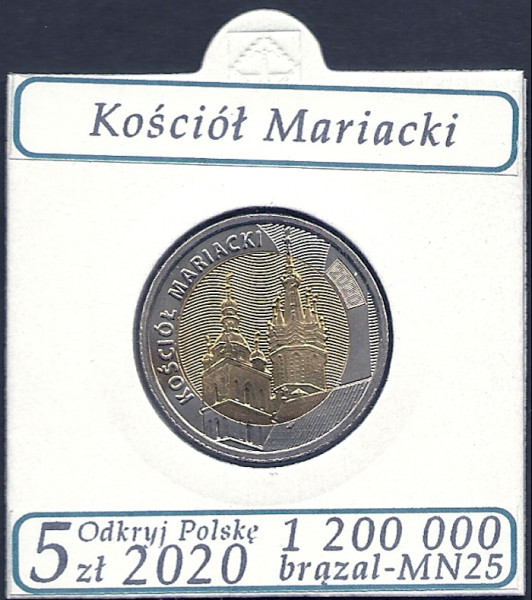 2020 r. 5 zł Kościół Mariacki. Moneta w stanie menniczym . Polecam