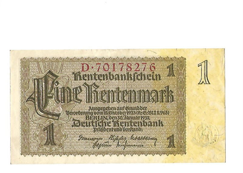 BANKNOT NIEMCY 1 marka RENTENMARK - 1937 r