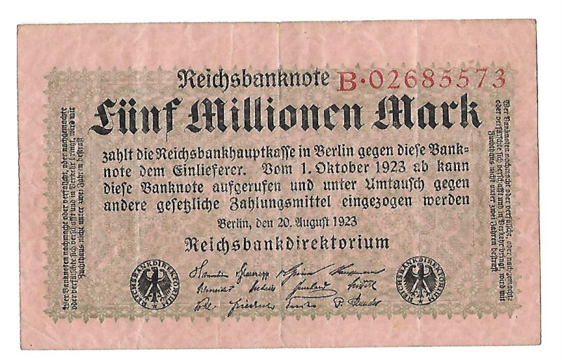 Banknot Niemcy 5 millionen mark 1923 (68)