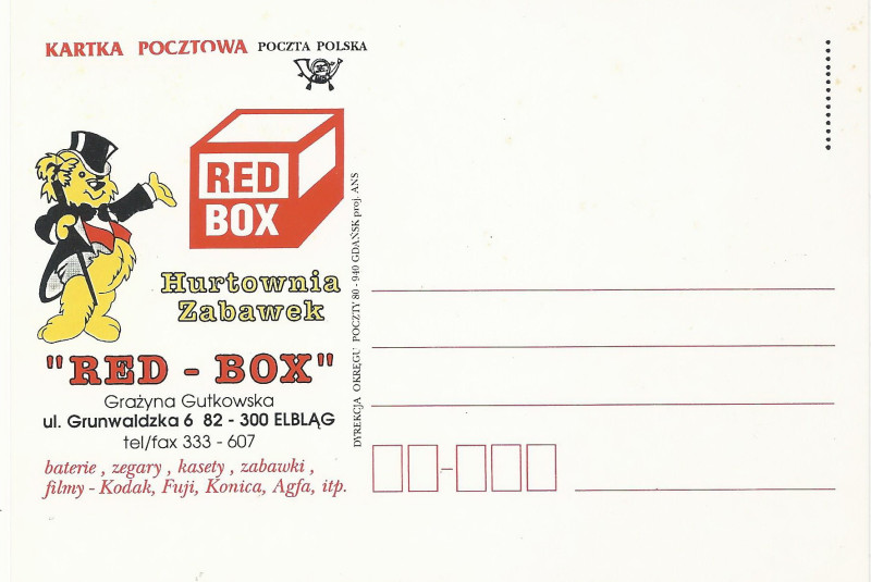 bez. Gdańsk 1996.XII.01b : Elbląg Red-Box Hurt. Zabawek