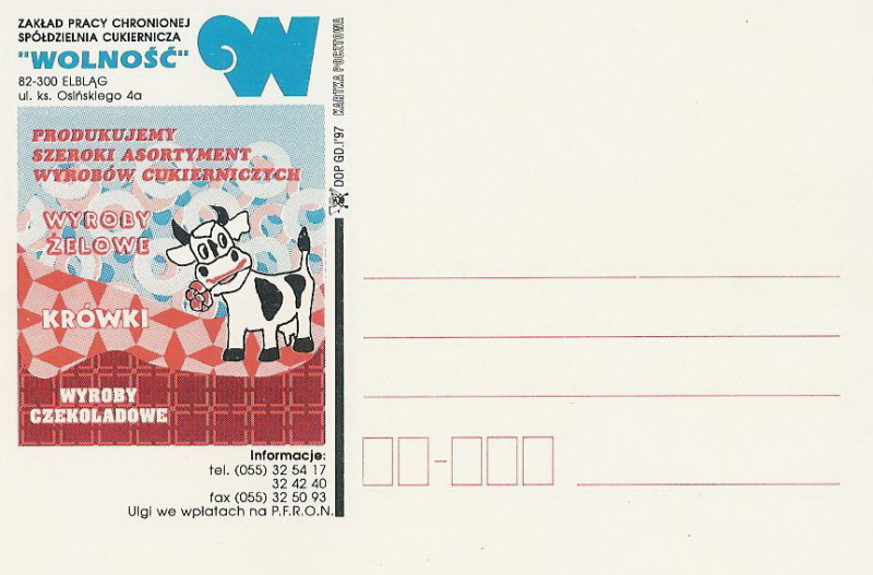 bez. Gdańsk 1997.I.02 : Elbląg Sp. Cukiernicza WOLNOŚĆ
