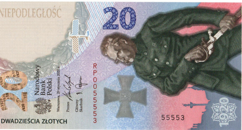 Pierwszy w historii Polski banknot kolekcjonerski w układzie pionowym wyemitowany dla upamiętnienia 100. rocznicy Bitwy Warszawskiej.