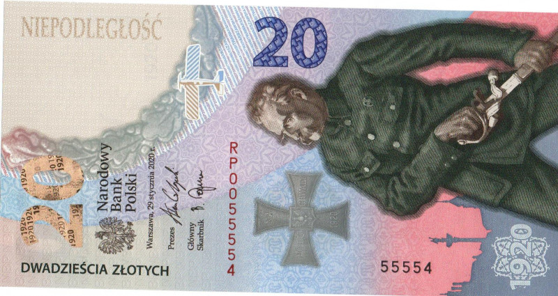 Pierwszy w historii Polski banknot kolekcjonerski w układzie pionowym wyemitowany dla upamiętnienia 100. rocznicy Bitwy Warszawskiej.
