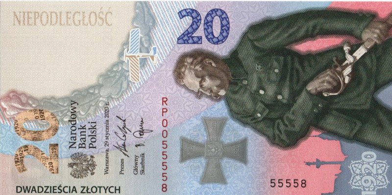 Pierwszy w historii Polski banknot kolekcjonerski w układzie pionowym wyemitowany dla upamiętnienia 100. rocznicy Bitwy Warszawskiej.