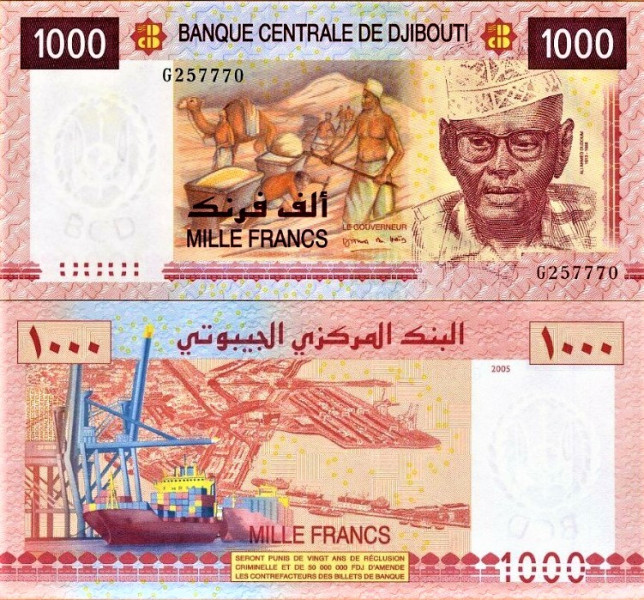 Banknot z Dżibuti 2005 - P42 - 1000 franków.