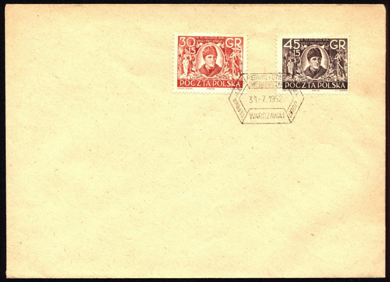FDC 1952 S-044 Fi 624-625 70 rocznica partii "Proletariat"