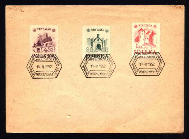 FDC 1952 S-046 Fi 629-631 Zabytkowe budowne