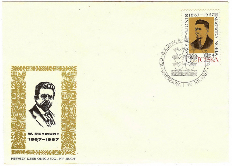 FDC 1967 S-370 Fi 1670 100 rocznica urodzin W. Reymonta