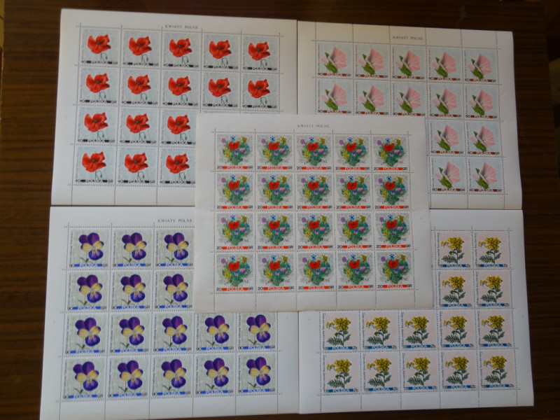 Komplet czystych arkuszy kwiaty polne. Arkusz 1634 niedodruk.