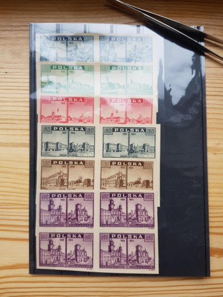 Oferuję serię ,Zniszczenia Wojenne W-wy w czwórkach, stan czysty ** z gwarancją i opisem rodzaju papieru i barwy na każdej ze czwórek.