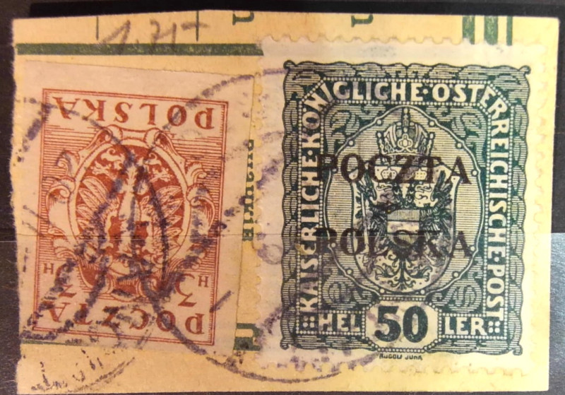 Wydanie przedrukowe - Fi 41 - 50 halerzy - tzw. krakowskie kasowany na wycinku