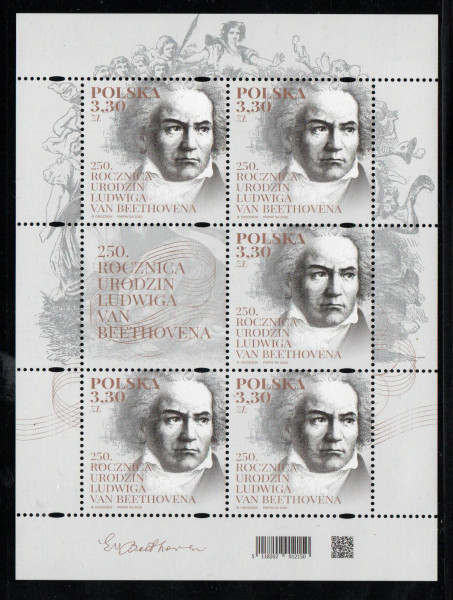 Arkusz Fi. 5118 - 250. rocznica urodzin Beethovena, w stanie bardzo dobrym.