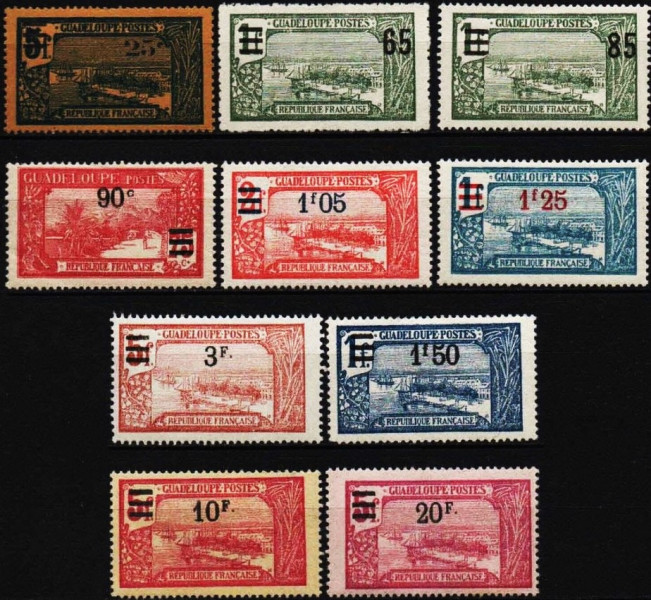Kompletna seria przedrukowa z Gwadelupy 1924. Walor ze zdjęcia! Wyprzedaż kolekcji! Polecam!