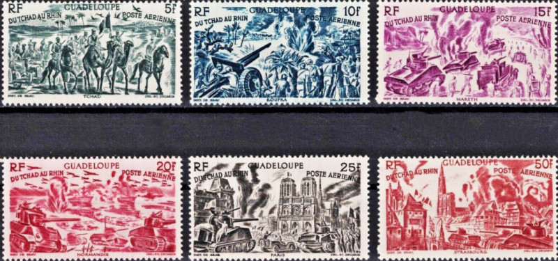 Kompletna seria z Gwadelupy 1946 -"Z Czadu do Renu". Walor ze zdjęcia! Wyprzedaż kolekcji! Polecam!