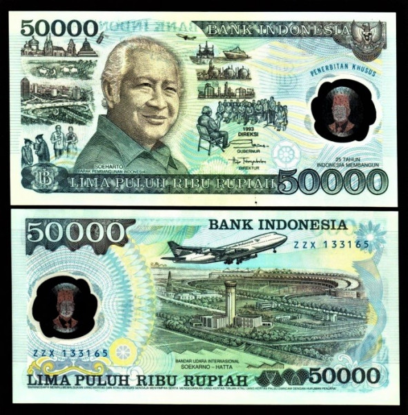 Polimerowy banknot okolicznościowy z Indonezjii 1993 - P134 - 50 tys rupiah.