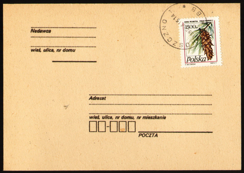 KP 1992 (stempel CHOSZCZNO) odwrócona cyfra w datowniku