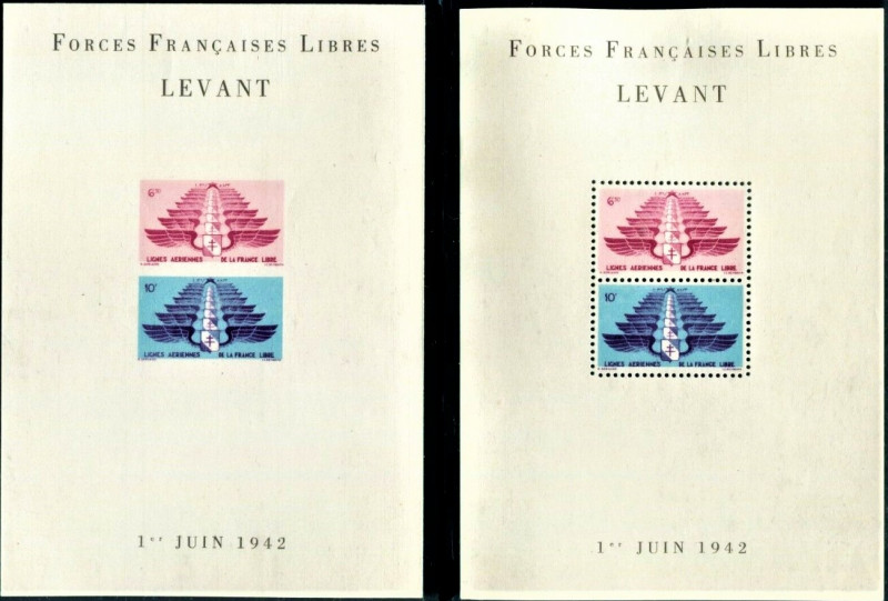 Komplet dwóch bloczków z Francuskiego Levantu 1942 - wydanie "Wolnej Francji" gen.De Gaulle.