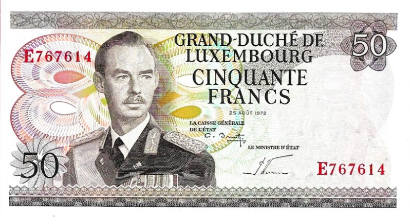 Banknot z Luksemburga 1972-P56-50 franków. Stan zachowania UNC! Walor ze zdjęcia! Wyprzedaż kolekcji! Polecam!
