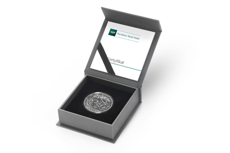 Dane techniczne Stan Zachowania Oferowanej Monety Stan Menniczy I Zdjęcie Oferowanej Monety Zdjęcie podglądowe z NBP Rok Emisji 2021 Stempel zwykły Nominał 50 złotych Nakład do 6000 Stop Ag 999 Średnica / Rozmiar Ø 45,00 mm Dodatkowe uszlachetnienie moneta oksydowana Waga w gramach 62,20 g Rant gładki Seria Tematyczna Temat Indywidualny / Okolicznościowy Data Emisji 28.04.2021 Katalog Fisher K(50)021 Katalog J. Parchimowicz 1521 Informacje o dodatkach Moneta w kapslu, Pudełko bankowe, Certyfikat