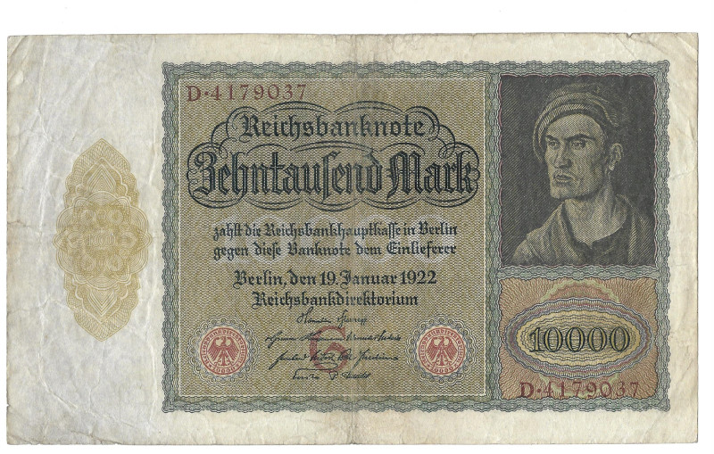 Banknot 10000 marek (Niemcy 1922) Stan: widoczny na załączonych scanach.