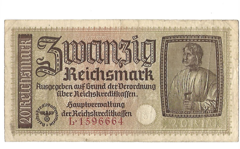 Niemcy - BANKNOT - 20 Marek 20 marek 1940-1945 rok.