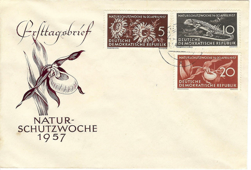 Niemcy (DDR) FDC 1957 Mi 561-563 Nature Conservation