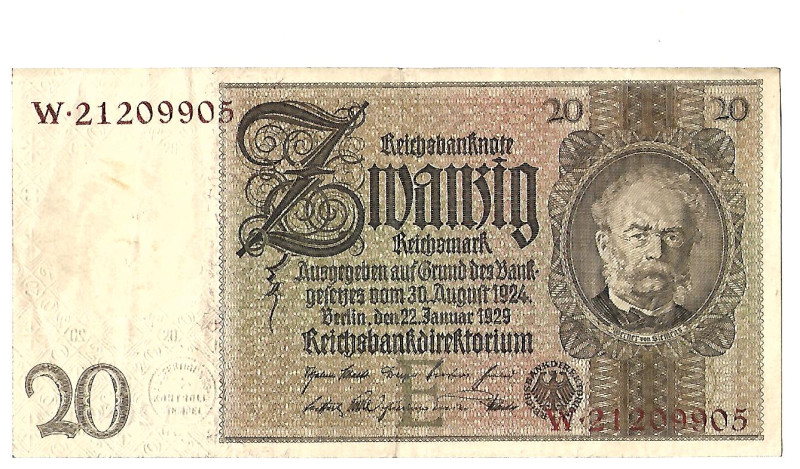 Niemcy - III Rzesza - BANKNOT - 20 Marek 1929 (55)